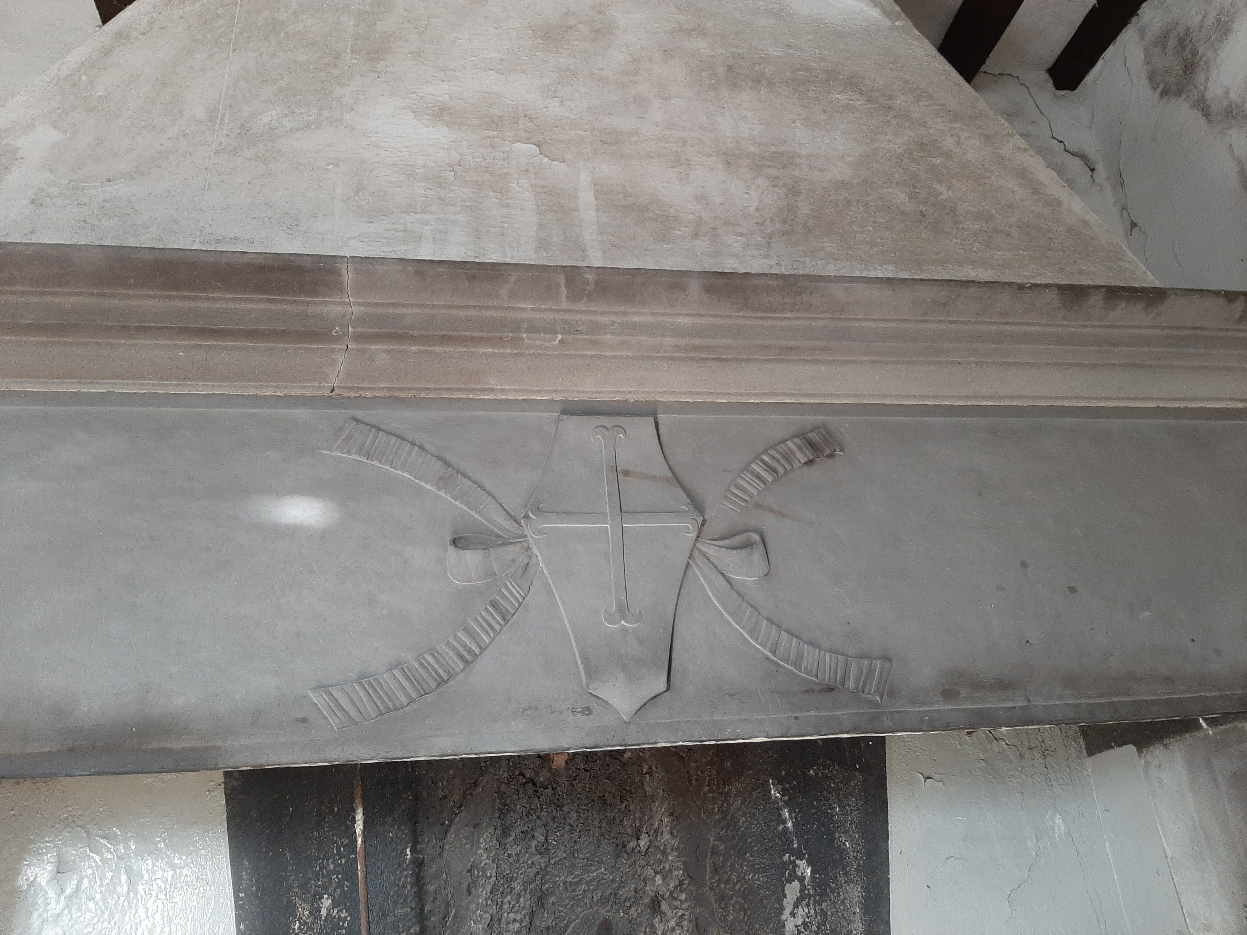 The cross is on the fireplace. I made a very quite check on Internet, it is a Floury cross (with Lily flower?).